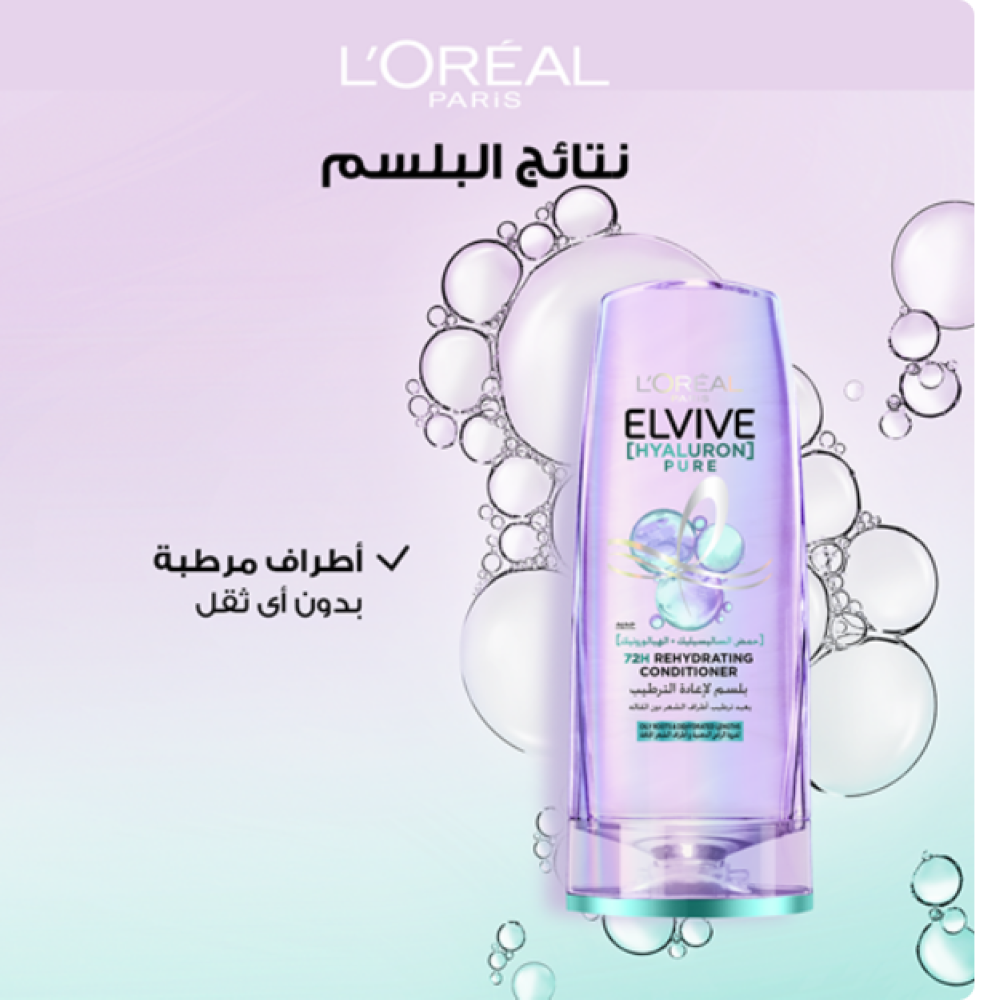 اطلبي الآن بلسم لوريال الفيف هيالورون بيور المنقي من متجر lamina وامنحي شعرك العناية التي يستحقها مع ترطيب نقي وخفيف طوال اليوم.