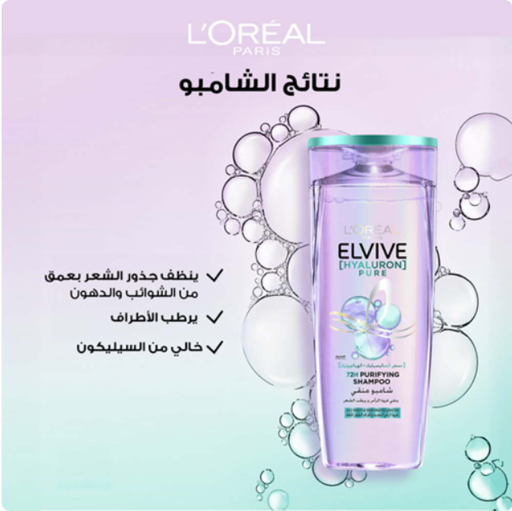 اطلبي الآن شامبو لوريال الفيف هيالورون بيور المنقي من متجر lamina وتمتعي بشعر نقي، منتعش وخالٍ من الدهون مع كل غسلة.